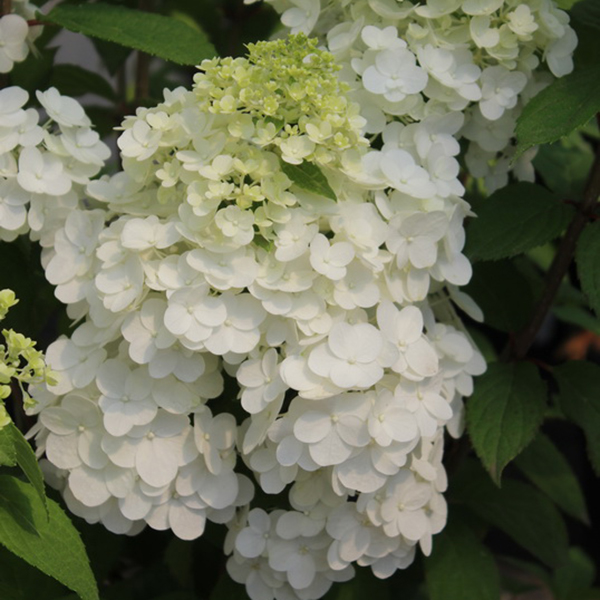 Гортензія хуртовина Полар Беар (Hydrangea paniculata Polar Bear) - розлогий великий чагарник до 2 метрів заввишки, і діаметром до 1,5 метра. Полар Беар цвіте дуже великими щільними конічними суцвіттями близько 40 см завдовжки, що складаються з білих, на початку цвітіння - зелених, квіток, які на осінь набувають легкого відтінку рожевого. Цвіте рясно з липня до жовтня на пагонах поточного року. Листя велике, до осені жовтіє.