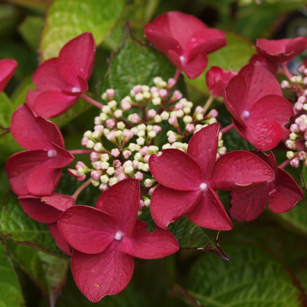 Гортензія крупнолистова Rotschwanz - зонтична гортензія з рідкісною плоскою формою кольорів. Маленькі центральні квіточки жовтувато-рожевого кольору. Маргінальні квіти темно-червоні, зіркоподібної форми. Забарвлення кольорів залежить від кислотності ґрунту. У лужному або нейтральному грунті квіти будуть рожеві, але чим вища кислотність, тим червонішим буде колір пелюсток. Цвіте з липня до серпня. Висота в саду 80-120 см ширина 100 см. Добре підходить для контейнера та невеликих садів. Міцна та витривала рослина. Місцерозташування та ґрунт: краще ростуть у півтіні. Повне полуденне сонце неприпустимо, але дуже глибока тінь так само не бажана. Оптимальним буде кілька годин прямого ранкового чи вечірнього сонця. Ґрунти бажано родючі, вологі та прохолодні, які не надто сильно висихають протягом літа. Полив глибокий та регулярний, без тривалого підсушування. Підживлення комплексними мінеральними добривами дозволять гортензії проявитися у всій своїй красі. Зимове та літнє мульчування так само піде на користь. Восени можна видалити непривабливі частини рослини, щоб кущ виглядав доглянутим. На початку весни обріжте всі слабкі, внутрішні та мертві гілки, а також підріжте кінчики решти гілок. Ця операція збільшить кількість пагонів та квітів. Але якщо обрізати занадто коротко, то цвітіння цього сезону ослабне. Обрізайте лише кінчики. Обрізати намагайтеся на зовнішню бруньку, цей принцип дозволяє сформувати правильну форму куща.