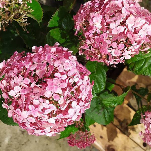 Гортензія деревоподібна Pink Annabelle - абсолютно новий сорт, виведений селекціонерами на основі гортензії Аннабель, з величезними, неймовірною красою суцвіттями, що нагадують ніжно-рожеві світанки. Швидкорослий чагарник. Висота і ширина куща від 0,9 до 1,2 м. Крона складається з міцних пагонів, покритих овальним світло-зеленим листям, що не гнуться під вагою великих суцвіть. Цвіте дрібними стерильними квіточками, зібраними у великі суцвіття, діаметром до 30 см. Пелюстки квіток при розпусканні пофарбовані по-різному - блідо-рожеві зверху і темно-рожеві знизу. У міру цвітіння цей ефект зникає і все суцвіття стає світлим чи темно-рожевим. Завдяки неодночасному розпусканню суцвіть має тривалий період цвітіння – червень-вересень. Цвіте гортензія Пінк Аннабель на втечах цього року. Місцерозташування та грунт: Рослина з гарною зимостійкістю. Особлива перевага вологим, дренованим, родючим ґрунтам. Місце посадки - сонце та півтінь. Обрізання потрібно виконувати ранньою весною, поки не почався рух соку, або після того, як починають розпускатися листочки. Використання: Яскрава краса гортензії деревоподібної Pink Annabelle не залишається непоміченою і в одиночних посадках та у складі складних квіткових композицій. Завдяки тривалому цвітінню, вона стане окрасою будь-якого палісадника, газону, місця відпочинку, не втрачаючи своєї привабливості до осені.
