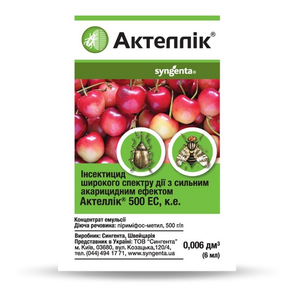 Актеллік - несистемний фосфорорганічний інсектицид, який має контактну, кишкову іфумігантну дію. Препарат застосовується для знищення листогризучих, смокчучих шкідників, включаючи кліщів. Завдяки унікальному об'єднанню широкого спектру дії, швидкої деградації на рослинах, а також контактної дії та фумігантної активності. Актеллік500 ЄС к.о. широко застосовується на багатьох овочевих та декоративних культурах. Термін персецидності (період наявності препарату на поверхні після обприскування) становить 3 дні. Період захисту залежить від погодних умов 7-10 днів. Для найкращого результату необхідно витримувати концентрацію робочого розчину 0,1-0,15 %. Теплі та вологі умови посилюють фумігантний ефект Актеллік 500 ЕС к.е.і, як результат, підвищується його ефективність.