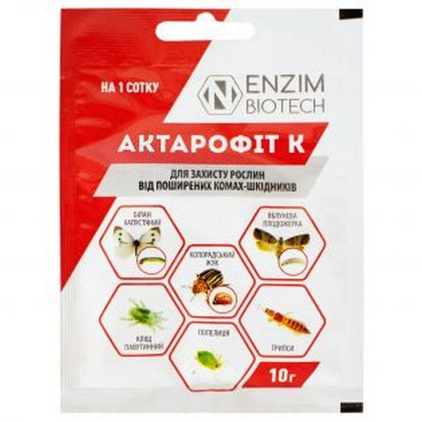 Ефективний проти колорадського жука, трипсів, плодожорок, капустниць, попелиці та інших шкідливих комах.