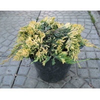 Чагарник, що стелиться, почвопокровний. Відносно повільний вид. У віці 10 років досягає 0,1 м висоти при діаметрі 1,2 м. Хвоя луската, золотаво-жовта, дуже декоративна, взимку трохи бронзовіє. Шишки дрібні, блакитні шишкоягоди, утворюються рідко. Бажано висаджувати на відкритих сонячних місцях. Виносить слабку півтінь. Віддає перевагу досить вологим, супіщаним грунтам, погано росте на важких. Морозостійкий вигляд, що виносить короткочасні морози до -30°С. Рекомендується як ґрунтопокривна рослина, а також для кам'янистих садів.