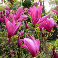 Магнолія Сьюзан (Magnolia Susan) - листяна, квітуча рослина з Магнолієвих. Існує безліч видів цього деревця. Шляхом старань учених сорт Сьюзан набув найширшого поширення серед садівників і просто любителів прекрасного. Форма: Молоді рослини схожі на конусоподібні чагарники. Залежно від умов утримання можуть набувати витягнутої форми, що не вважається відхиленням від норми. З віком набувають округлі обриси. Розмір: При правильному догляді деревце може досягати 3 - 3,5 метрів заввишки. Однак в умовах помірного клімату рідко виростають понад 2 метри. Зростає досить повільно, до 20 сантиметрів приросту на рік. Листяка: Пишна, росте пучками на зрілих гілках, розташовується хаотично. Сформовані листки досить великі по 10 см завдовжки. У теплу пору року темно-зеленого кольору, з похолоданням жовтіють. Коренева система: Добре розвинена. Коріння широко розгалужене, розташовується на поверхні. Рекомендації щодо посадки: Особливу увагу слід приділити ґрунту. На кислому та вологому ґрунті магнолія важче переносить зимівлю. Для відмінного зростання та розвитку в неглибоку посадкову яму потрібно додати добру частку піску та листя. Місце має бути захищеним від протягів та сильного вітру. Для успішного вкорінення краще вибрати південну сторону, а посадку робити навесні. Догляд: Крім багатого і частого поливу цій рослині нічого не потрібно. Мінеральні або комплексні добрива можна періодично використовувати для зміцнення, проте і без підживлення кущ добре цвістиме і розвиватиметься. Молоді саджанці на зиму покриваються подвійним шаром нетканого матеріалу. Дорослі дерева нормально переносять зиму самостійно. Особливості: У жодному разі землю навколо стовбура не можна перекопувати або утоптувати - це дуже шкодить корінням. Прикореневу зону важливо мульчувати щільним шаром листя. Враховуючи те, що крона може досягати 3 - 4 метрів завширшки, деревце повинне рости там, де йому буде достатньо місця. Використання в дизайні: Для домашніх садів і палісадників просто чудовий варіант. Відмінно виглядає як у квітковій клумбі, так і серед фруктових дерев. Висота рослини: 125-150 см
