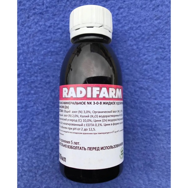 Біостимулятор Радіфарм (Radifarm) - органічне добриво з вітамінами та мікроелементами у формі хелатів. Спеціально розроблений активатор для розвитку кореневої системи. Стимулює розвиток бічних та допоміжних коренів. Забезпечує ранній старт вегетативного циклу, стимулює вироблення гормонів, які відповідають за зростання кореня. Зменшує стрес, спричинений пересадкою рослини. Сприяє швидкому вкоріненню розсади, а також саджанців, кущів, дерев. Захищає від заморозків.