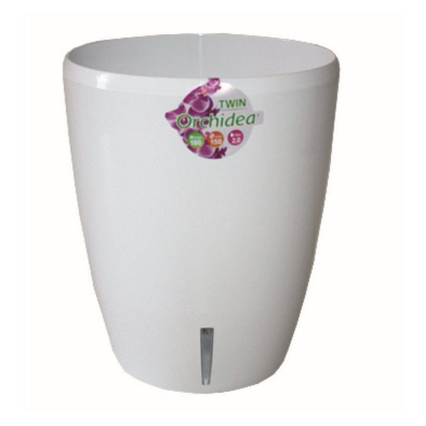 Вазон-горщик Орхідея Твін (Twin) Горщик для орхідей із системою контролю рівня води. Складається із зовнішнього декоративного вазону з прозорим отвором внизу для контролю рівня води, та внутрішнього горщика-вкладиша з дренажними отворами, а також ґнотом для зволоження коренів. За рахунок поглиблення на денці горщика коренева система квітки не загниє, піддон або спеціальна ємність для збору зайвої води не потрібно. Горщик створений для комфортного зростання будь-яких представників сімейства орхідей. Характеристики: Діаметр: 14 см, Висота: 17,5 см, Об'єм: 2 л, *Коліри можуть відрізнятися в залежності від налаштувань вашого монітора.