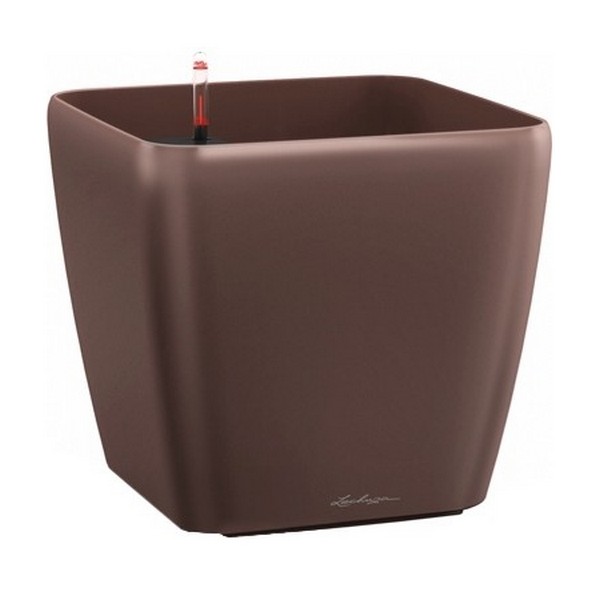 Вазон Lechuza Quadro LS 28 еспресо оснащений надійною системою автополиву з днищем, що розділяє, поливальною шахтою та індикатором рівня води для повного контролю поливу.