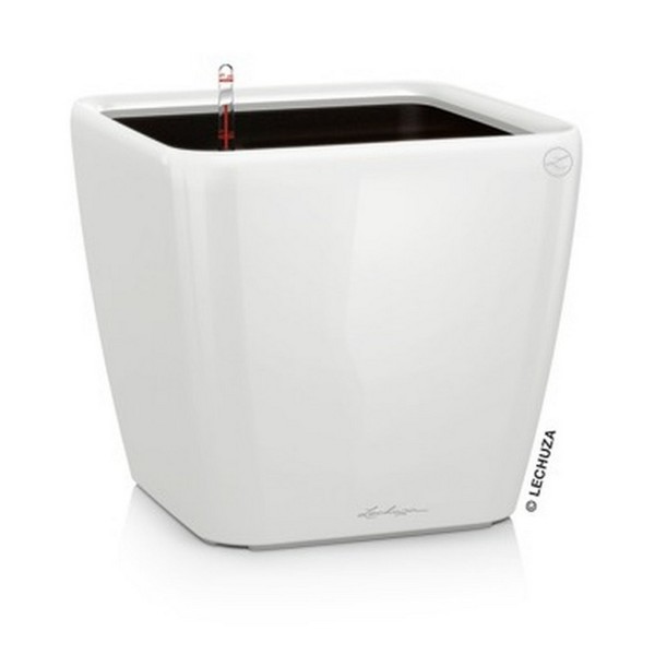 Вазон Lechuza Quadro білий оснащений надійною системою автополиву з днищем, що розділяє, поливальною шахтою та індикатором рівня води для повного контролю поливу.
