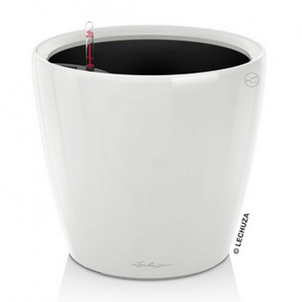 Lechuza Classico LS 28 білий складається із зовнішнього кашпо, знімного посадкового горщика з висувними ручками, субстрату Lechuza-PON та індикатора рівня води.