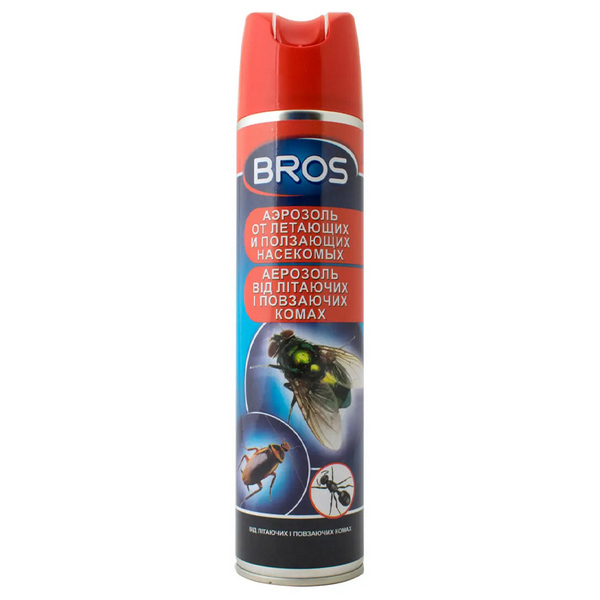 Аерозоль від літаючих та повзаючих Bros 150 мл – унікальний засіб, який надовго захистить вас від комах. Перевагою даного засобу є його ефективність у боротьбі як з комами, що повзають, так і з літаючими, які чутливі до впливу компонентів препарату. Аерозоль має миттєву дію з довгостроковим закріпленням отриманого ефекту. З інсектицидом вам не страшні ні мухи, ні комари, і навіть: оси, моль, таргани, блохи, мурахи та інших. Перед застосуванням слід ознайомитися з інструкцією до препарату. Перед оздобленням приміщення закрити двері та вікна, збовтати балончик та розпорошити у приміщенні від краю кімнати, рухаючись до дверей. Після дезінсекції залишити приміщення закритим приблизно на 15 хвилин, потім провітрити. Препарат зберігати у недоступному для дітей місці.