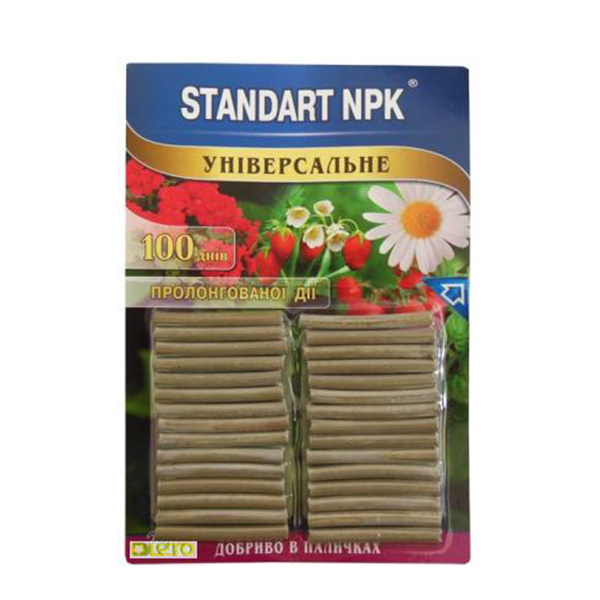Добриво в паличках Standart NPK універсальне має у своєму складі всі необхідні макро- та мікроелементи, які забезпечують збалансоване харчування для здорового росту різних видів рослин на всіх етапах розвитку. Stadart NPK легкозасвоюване та зручне у використанні. Палички поступово розчиняються під час поливу рослин, забезпечуючи харчування протягом 3-х місяців. Завдяки тому, що поживні речовини виділяються поступово та дозовано, рослинам не загрожує перенасичення добривом, відсутній ризик сольового стресу.