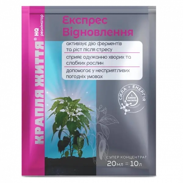 Добриво Крапля життя Експрес Відновлення мінеральне – реаніматор рослин після будь-яких стресів, інноваційний амінокислотний комплекс для швидкого відновлення рослин.