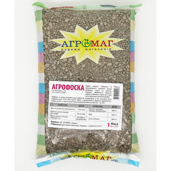 Мінеральне добриво містить: - фосфор Р25%, калій К4%, кальцій Са25%, магній Мg3% + мікроелементи (цинк, нікель, мідь, кобальт).