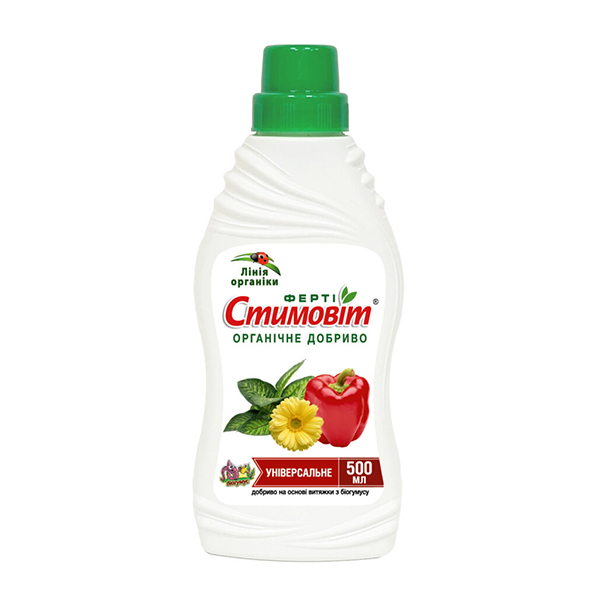Стимовіт - універсальне рідке добриво, яке відрізняється високою ефективністю. Основним складником засобу є витяжка з біогусусу – продукту життєдіяльності червоного хробака. За рахунок цього добавка повністю органічного походження.