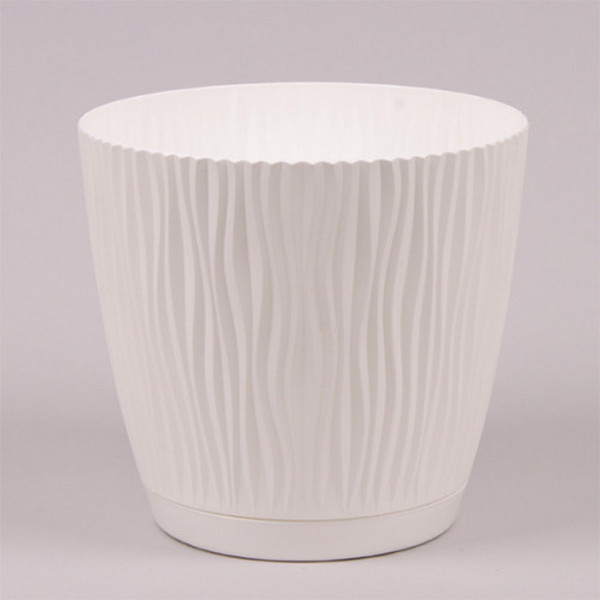 Горщик для квітів Sandy прикрашений хвилястими вертикальними борозенками, що нагадують візерунки на піску пустелі. Цей декоративний горщик для рослин майже так само гарний, як і традиційна кераміка, розписана вручну. Нейтральні, скромні кольори, які гармоніюватимуть із сучасним інтер'єром, лише додають йому чарівності. Виготовлений з товстого, виключно міцного пластику, стійкий до механічних пошкоджень та впливу сонячних променів та морозу. Його можна використовувати не тільки у приміщенні, але й на вулиці, не побоюючись поломки, втрати кольору чи якості. Піддон оснащений системою, що самоблокується. Колір: Білий Діаметр: 17 см Висота: 16 см Об'єм: 2,9 л