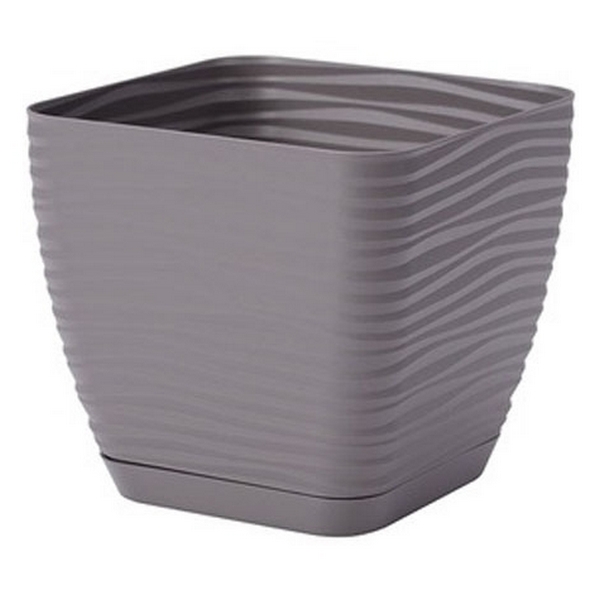 Вазон для квітів із піддоном Sahara petit Квадро - сучасна декоративна ємність, яка зачаровує своєю формою, витонченістю, кольором та підкреслює красу самих рослин. Завдяки високій зносостійкості він може використовуватися для озеленення квартир, балконів, терас, веранд та оранжерей. Квадратний корпус виконаний у різних відтінках та прикрашений об'ємними рельєфними горизонтальними хвилями. Горщик виготовлений із міцного пластику, який не піддається вигорянню під сонячним промінням, йому не страшна волога, що робить ємність придатною для вуличного вирощування. У комплекті з вазоном додається підставка, виконана в такому відтінку, яка захистить поверхню під горщиком від впливу вологи.