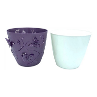 Висаджують та поливають рослини у внутрішній горщик, забезпечуючи чистоту та зручність без протікання води на підвіконня. Горщик виготовлений із міцного якісного пластику з матовою, текстурованою поверхнею, характеризується удароміцністю та еластичністю, стійкий до знебарвлення під впливом сонця.