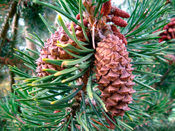 Цветет в конце мая, вместе с распусканием хвои. Хвоя зеленого цвета, тупо-заостренная, парная, 5-7 см в длину, часто скрученная, жесткая, сохраняется на дереве 4-5 лет.