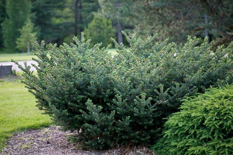 Имеет распростертую (f. prostrata) форму - низкий, стелющийся кустарник с горизонтально распростертыми ветвями.