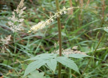 Корневище толстое, недлинное, многоглавое. Стебли травянистые, высокие (90-200 см), по 1 или нескольку из корневища, густо покрытые железистыми и простыми волосками. Листья крупные, нижние на длинных при основании расширенных черешках, дважды тройчатые, с длинными непарноперистыми сидячими долями. Конечные доли продолговато- яйцевидные, 5-7 см дл., 2-3 см шир., к верхушке заостренные, перисто- надрезанные, по краям пиловидно-зубчатые, снизу по жилкам волосистые. Цветки двуполые, в метельчатом соцветии, также опушенном, как и стебель. Прицветники шиловидные, равные цветку. Чашелистики лепестковидные, опадающие. Лепестки-нектарники цельные, на верхушке почти пленчатые. Тычинки многочисленные. Цветет в середине лета. Засухоустойчива.