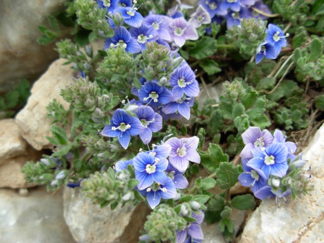 Цветки 0,7-1 см в диаметре, собраны по 4-10 шт. в короткие верхушечные, щитковидные, плотные кисти. Венчик колесовидный, светло-синего или розово-пурпурного цвета. Цветоножки явно выраженные, опушены. Цветет в июне-июле.