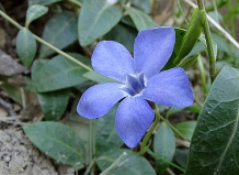 Отрастающие стелющиеся побеги укореняются в местах соприкосновения с почвой. В конце лета почти все узлы в средней и верхней частях побега укореняются. Цветущие побеги приподнимаются, что создает эффект рыхлости покрова, образуемого барвинком опушенным. Цветки одиночные, 3 - 3,5 см в диаметре. Цветет в мае - июне в течение 25-30 дней. Листья не зимуют.