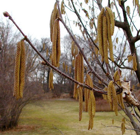 Цветет в конце апреля. Мужские соцветия – цилиндрические сережки, 1,5-2 см в длину, собраны по 4-6 штук. Прицветники ромбически-яйцевидные, цилиндрические.