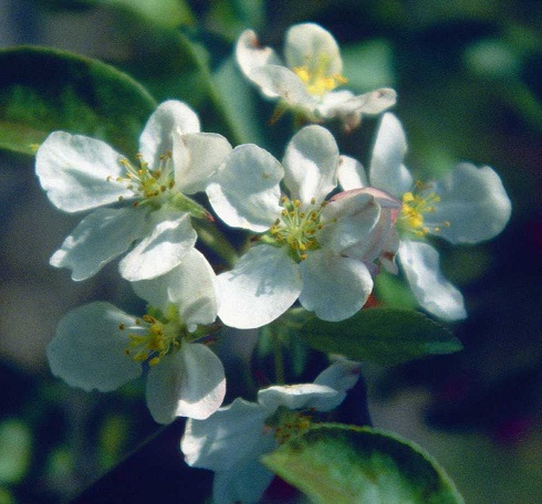 Цветет обильно, в апреле - начале мае. Цветение в зависимости от условий произрастания может продолжаться до 2 недель. Цветки белые, простые, 3,5-4 см в диаметре, расположены на концах коротких побегов, ароматные, привлекают пчел. Лепестки в количестве 5, не перекрещенные. Почки сине-красного или светло-розово-красного цвета, немного полосатые. Нуждается в опылителе.