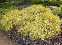 Разрастается медленно и характерным способом: компактный кустик выбрасывает отростки, которые, обрастая в одном направлении, формируют интересный каскад. Отличается темно-зеленой листвой, по виду напоминающей бамбук, которая осенью приобретает теплый розовый оттенок. За необычный вид получила название "плачущая трава". В конце лета чуть выше пучка травы появляются желто-зеленые шипы колосков. В продаже встречается достаточно редко из-за медленной скорости размножения. В культуре как правило сорта и формы.
