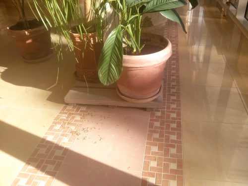 На зимний период ее необходимо пересадить,  обрезать на ½ и переместить в прохладное,  светлое помещение на «зимовку», и продолжать за ней ухаживать в зимнем режиме.  А  поздней весной вернуть растение на террасу.