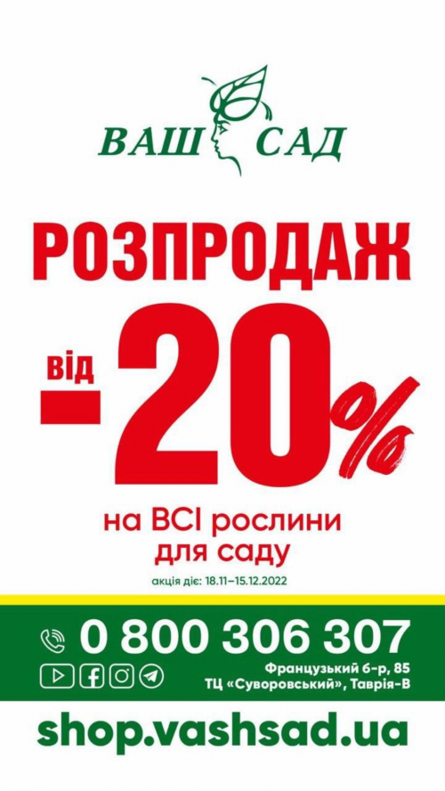 З 18.11.22 до 15.12.22 знижки на всі садові рослини від -20%!