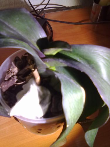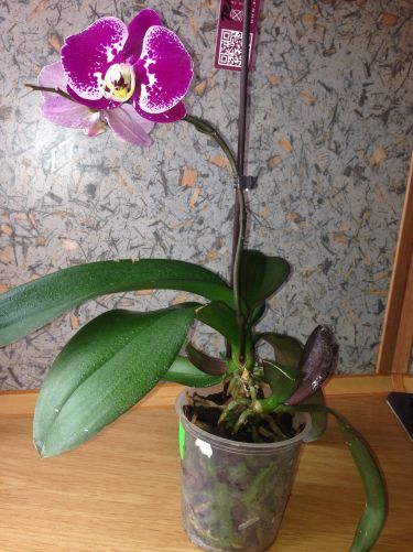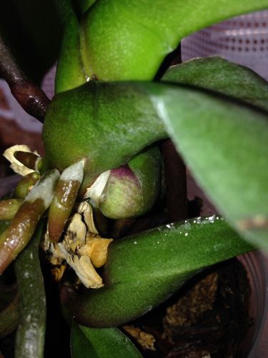 Если растень вытянула два цветоноса, то здоровья ей еще хватит дать новые корни и очухаться. Но цветоносы я бы обрезала. Корней, можно сказать, нет. Тяжело ей будет. Да и не факт, что бутоны не скинет.