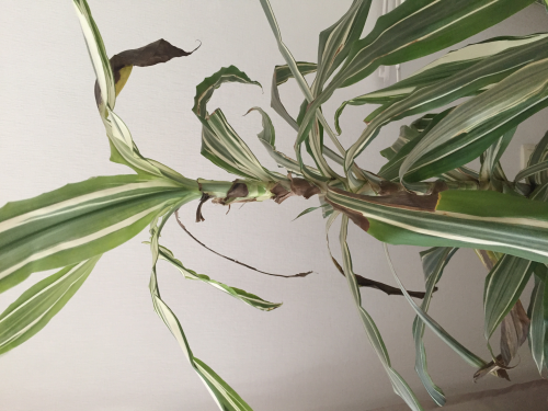 Vicci Добрый день. Хотела бы проконсультироваться по поводу состояния драцены. Последние пару месяцев имеет вот такой вид,(фото ниже)-листья начинают сохнуть не только на кончиках,но и с середины (сбоку листика). Я срезаю края сухие,но лист продолжает портиться дальше и потом просто отпадает. Остается лысый участк. Поливаю летом примерно раз В неделю,сейчас реже. Подскажите,пожалуйста,что с ней делать. А то жалко. Уже выросла такая большая и начала болеть. Спасибо