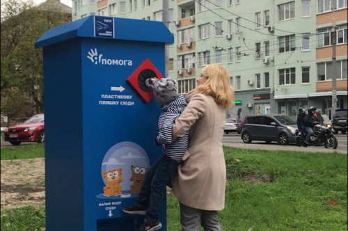Гарна ідея ( цитата із статті) : "...Спершу за кожну вкинуту пляшку автомат видавав 50 грам корму( для тварин) , але через великий попит порцію зменшили до 20 грам..."