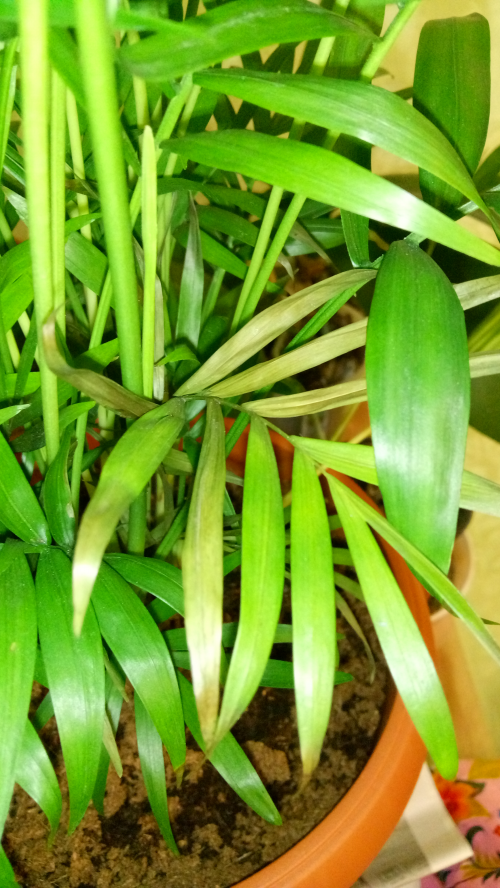 Lesynia90, что-то листики у хамедореи бледноваты и как-будто в мелкую желтую точку (это бывает, когда паутинный клещик или другой вредитель пьет соки из растения). Осмотрите внимательно цветок на наличие вредителей, особенно внимательно с нижней стороны листика. Клещик очень мелкий, его надо искать при хорошем освещении и с лупой.