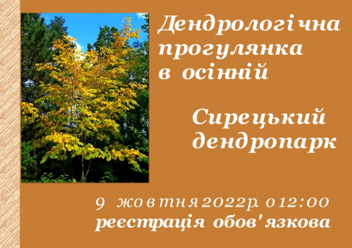 Михалыч Запрошуємо на дендрологічну осінню прогулянку Сирецьким ДЕНДРОПАРКОМ! За двугодинну прогулянку дендролог Вам розкаже за цікаві деревні рослини парку ( особливості їх вирощування та використання в ландшафтному дизайні і озелененні). Ми побачимо найстарійший в Києві Тис далекосхідний, Ви взнаєте чому Ліродендрон називається "тюльпанне дерево" , а Катальпа - "макаронне дерево", які хвойне НЕ вічнозелені та ще багато цікавоЇ інформаціЇ про світ рослин. Якщо є питання задавайте їх в коментарях до цього повідомлення. Реєстрація на захід на сторінці заходу в фейсбук за посиланням нижче - обовязкова. https://www.facebook.com/events/626570949079222/... P.S. Синоптики обіцяють на 25 вересня гарну погоду, але ... парасольки не завадять. Зручне взуття - обовязково! Шлях до дендропарку буде пролягати через Сирецький гай .