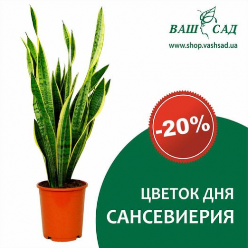 Квітка дня Сансевієрія зі знижкою -20% в Садовому центрі ВАШ САД на Французькому бульварі, 85!