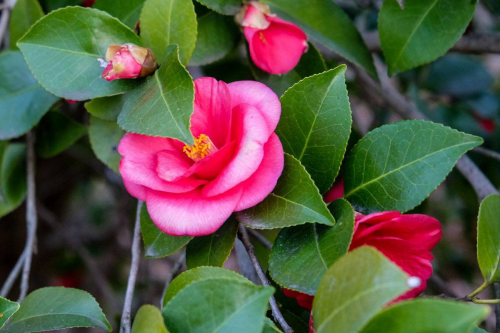 Чудова вічнозелена рослина, що ідеально підходить для прохолодної оранжереї та затишного саду. Глянцеві та пишні квіти Камелії радують своїм цвітінням до півроку, наповнюючи простір вишуканістю та королівським шармом. Камелія японська добре переносить перепади температури та затінення, любить м'який, розсіяний колір, підвищену вологість повітря та регулярні поливи, важливі для тривалого цвітіння.