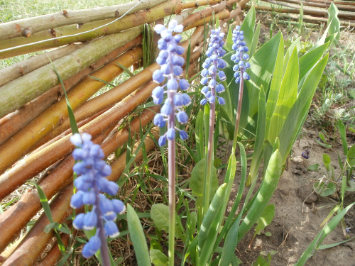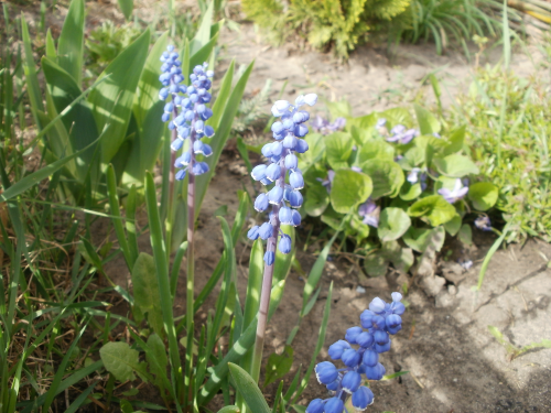Мускари гроздевидный (М. botryoides) произрастает на лугах и горных склонах в субальпийском и альпийском поясах Средней и Южной Европы. Один из самых распространенных в культуре. Внешне похож на мускари армянский, но имеет более узкие и короткие соцветия. Цветы синие, с фиолетовым оттенком. В культуре с конца XVI века. Неприхотливые зимостойкие. Цветут в апреле-мае приблизительно 15-20 дней.
