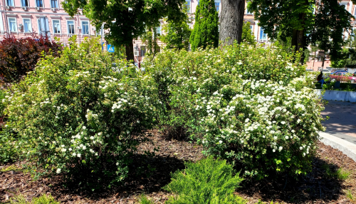Розпочала квітування мабуть найбільш розповсюджена в озелененні із спірей - Спірея Вангутта/ Ван -Гутта - Spiraea ? vanhouttei