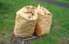 В такие пакеты жители собирают садовые отходы: обрезки веток, скошенную траву, листья. Затем это все вывозят.
