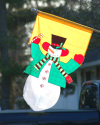 Когда снег покрывает землю толстым слоем, садовые флаги не являются оптимальным выбором для украшения газонов, всегда есть риск, что они будут погребены под снегом.