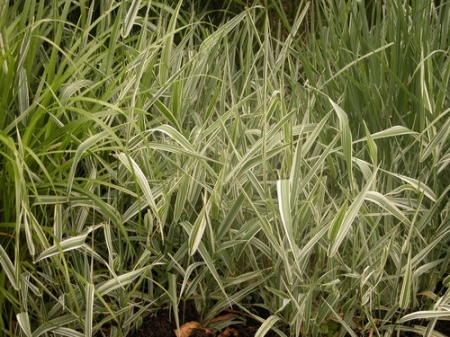 Трава на фото – это пестрая разновидность Двукисточника тростниковидного. За этим растением нужно постоянно присматривать. Сухая тень – лучшее условие для предотвращения разрастания.