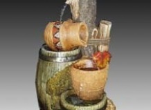 А фонтан, который украсит ваш сад, будет выглядеть как два деревянных бочонка, расположенных один над другим, из верхнего же боченка в нижний будет стекать струя воды.