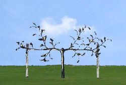 Отличается тем, что все ветви отходящие от ствола, направляют вдоль ряда.