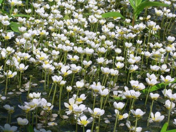 Посадка растений – также необходимый элемент декорирования водоема. Прекрасно выглядят кувшинки и другие нимфейные в пруду. Вокруг водоема можно высадить незабудку, ирисы, осоку мохнатую, калужницу болотную, вербейник обыкновенный, аквилегию, лютик и многие другие растения.