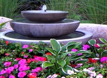 Мини-фонтан уже содержит резервуар для воды, к нему необходимо только подвести электроэнергию для работы насоса. Устанавливается такая конструкция на уровне земли, выкапывать под нее отдельную нишу не нужно. Сегодня модно при оформлении садового участка учитывать предписания учения фэн-шуй, в котором воде отводится роль важнейшего фактора, имеющего непосредственное влияние на жизнь людей. Вода, особенно движущаяся, считается символом богатства, процветания, успешной карьеры, а динамическая сила воды ассоциируется с позитивным продвижением.
