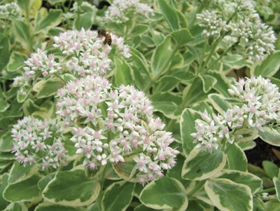 G. 3 шт. Очиток «Фрости морн», или «морозное утро» (Sedum x “Frosty Morn”): зацветает в конце лета – осенью, имеет нежнорозовые цветы, край листа имеет белый ободок, высота – 30.5 см; зоны 3-9 двулетник