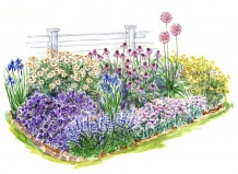 Эта клумба была придумана специально для начинающих садоводов или для садоводов, жестко ограниченных во времени. Клумба эта невелика по размерам, а подобранные для неё растения – многолетники, не требующие почти никакого ухода.