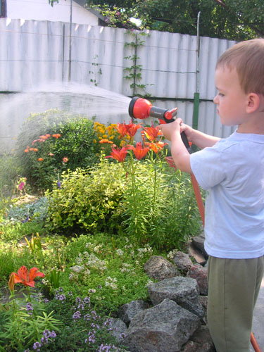 Красивый и законченный вид детской площадке придадут подходящие растения. Дерево с зонтиковидной кроной даст приятную прохладу в летний жаркий день, а с плакучей - замечательный шалаш для пряток и уединения. Кустарники, высаженные по периметру, также помогут сделать площадку уютной, закроют от посторонних взглядов, пыли и ветра. Естественно, близко не высаживают растения с колючками или ядовитыми частями (листьями, ягодами), не желательны здесь также цветы с сильным ароматом. Совсем ограждать детей от посадок нет смысла. Ребенок должен расширять кругозор и знакомиться с окружающим миром. Лучше уделить время и просто научить малыша не тянуть в рот ничего, в чем он не уверен и всегда спросить у взрослых, прежде чем что-то попробовать на вкус. Самая мудрая тактика- не запрещать, а объяснить и научить. А еще интереснее вместе с малышом устроить небольшую грядку, где вы посеете семена (желательно крупные и прорастающие за несколько дней, чтобы ребенок не успел потерять интерес, например, фасоль или горох), будете вместе наблюдать и ухаживать за всходами, а потом еще и собирать вкусный урожай. Восторгу и гордости вашего малыша не будет предела!