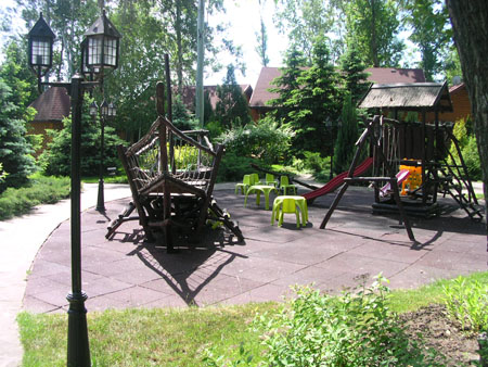 Сначала важно правильно выбрать подходящее место на участке для ее размещения. Чтобы взрослые были спокойны и могли наблюдать за играющими детьми, лучше, если площадка будет расположена перед окнами комнаты, где чаще находятся взрослые (кухня, гостиная, кабинет). Так спокойнее и маме, и ребенку. Важно, чтобы место игр было хорошо освещено, но при этом часть площадки (около 1/3, но не более половины) стоит притенить (навес или садовый зонт, ажурная тень от дерева или сплошная - от строения). В глубокой тени детскую площадку располагать не стоит, поскольку здесь долго не тает снег, после полива или дождя медленно просыхают почва, мощение или специальное покрытие. Лучше если детский уголок хорошо проветривается (глухое ограждение не годится), однако избегайте сквозняка, т.е. между домом и кирпичным забором место совсем не подходящее. В крайнем случае, ситуацию можно исправить высадкой изгороди из кустарников или трельяжами, увитыми плетистыми растениями, которые устраняют сквозняки, но оставляют возможность проветривания.